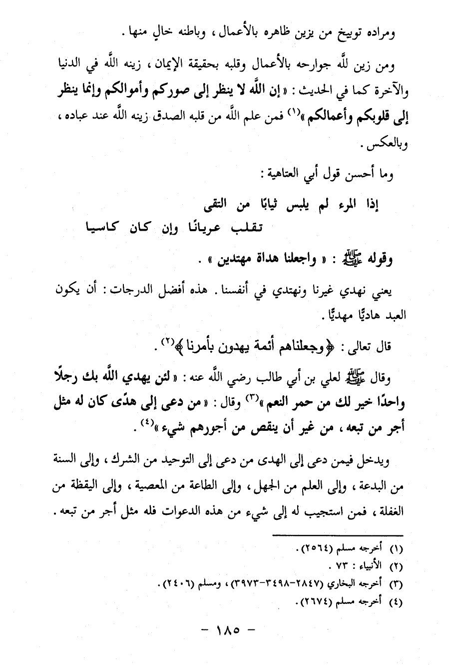 وقال - صلى الله عليه وسلم - لعلي بن أبي طالب رضي اللَّه عنه: "لَئِنْ يَهْدِيَ اللَّهُ بِكَ رَجُلًا وَاحِدًا خَيْرٌ لَكَ مِنْ حُمْرُ النَّعَمِ" (¬3) وقال: "من دعى إِلَى هدًى كان له مثل أجر من تبعه، من غير أن ينقص من أجورهم شىِء" (¬4).