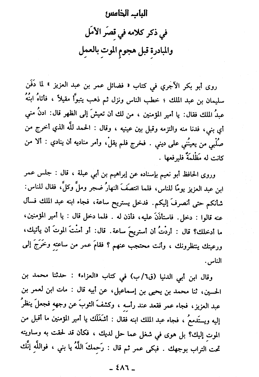 في ذكر كلامه في قِصَر الأمَل والمبادرةِ قبل هجومِ الموتِ بالعملِ