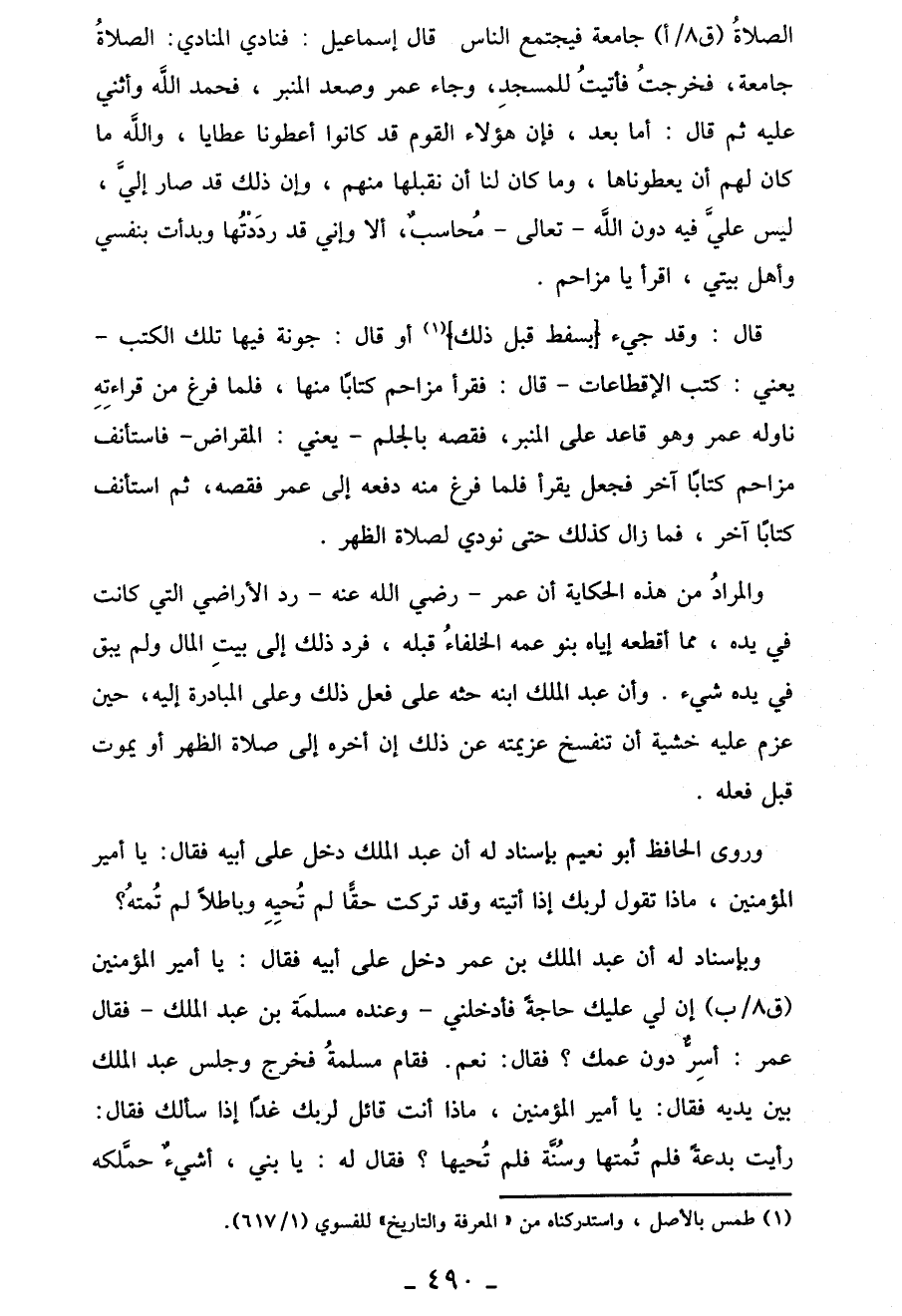 والمرادُ من هذه الحكاية أن عمر -رضي الله عنه- رد الأراضي التي كانت في يده، مما أقطعه إياه بنو عمه الخلفاءُ قبله، فرد ذلك إِلَى بيتِ المال ولم يبق في يده شيء. وأن عبد الملك ابنه حثه عَلَى فعل ذلك وعلى المبادرة إِلَيْهِ، حين عزم عليه خشية أن تنفسخ عزيمته عن ذلك إِن أخره إِلَى صلاة الظهر أو يموت قبل فعله.