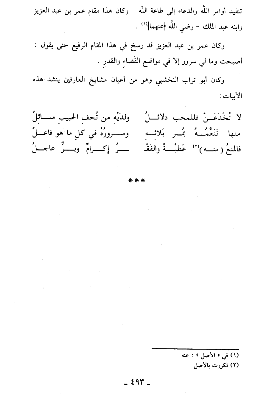 وكان أبو تراب النخشبي وهو من أعيان مشايخ العارفين ينشد هذه الأبيات: