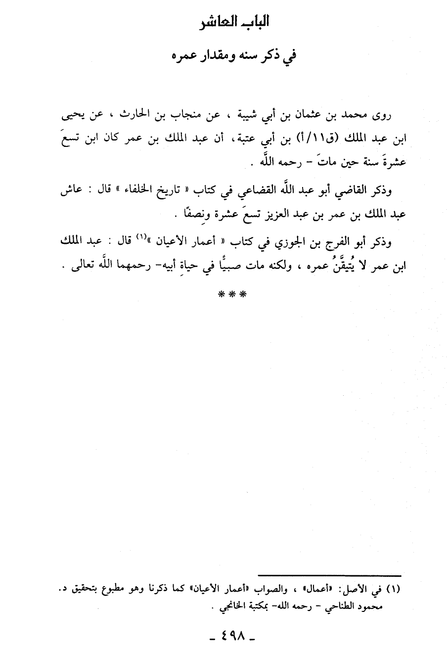 (¬1) في الأصل: "أعمال"، والصواب "أعمار الأعيان" كما ذكرنا وهو مطبوع بتحقيق د. محمود الطناحي -رحمه الله- بمكتبة الخانجي.