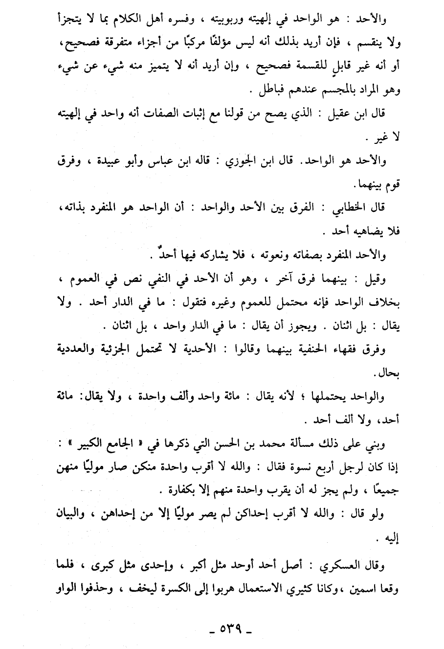 وفرق فقهاء الحنفية بينهما وقالوا: الأحدية لا تحتمل الجزئية والعددية بحال.