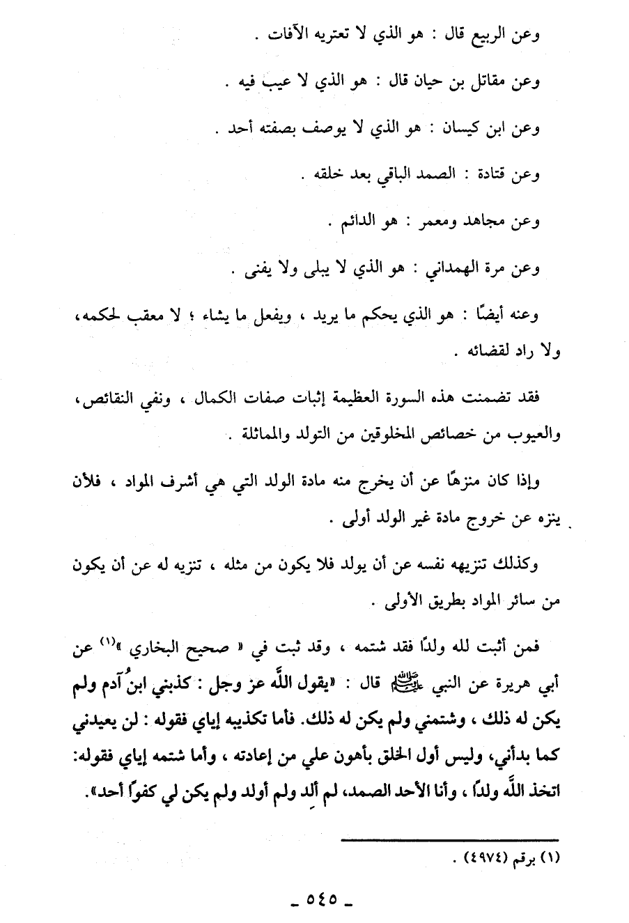 وعن قتادة: الصمد الباقي بعد خلقه.