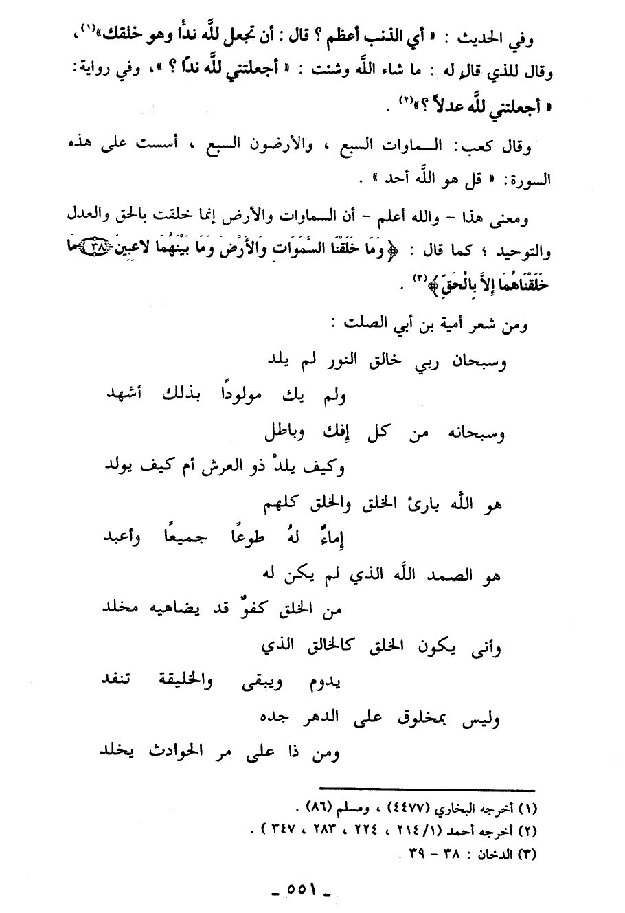هو الصمدُ اللَهُ الذي لَمْ يكنْ لَهُ. . . مِنَ الخلقِ كفوٌ قَدْ يُضَاهِيه مخلد