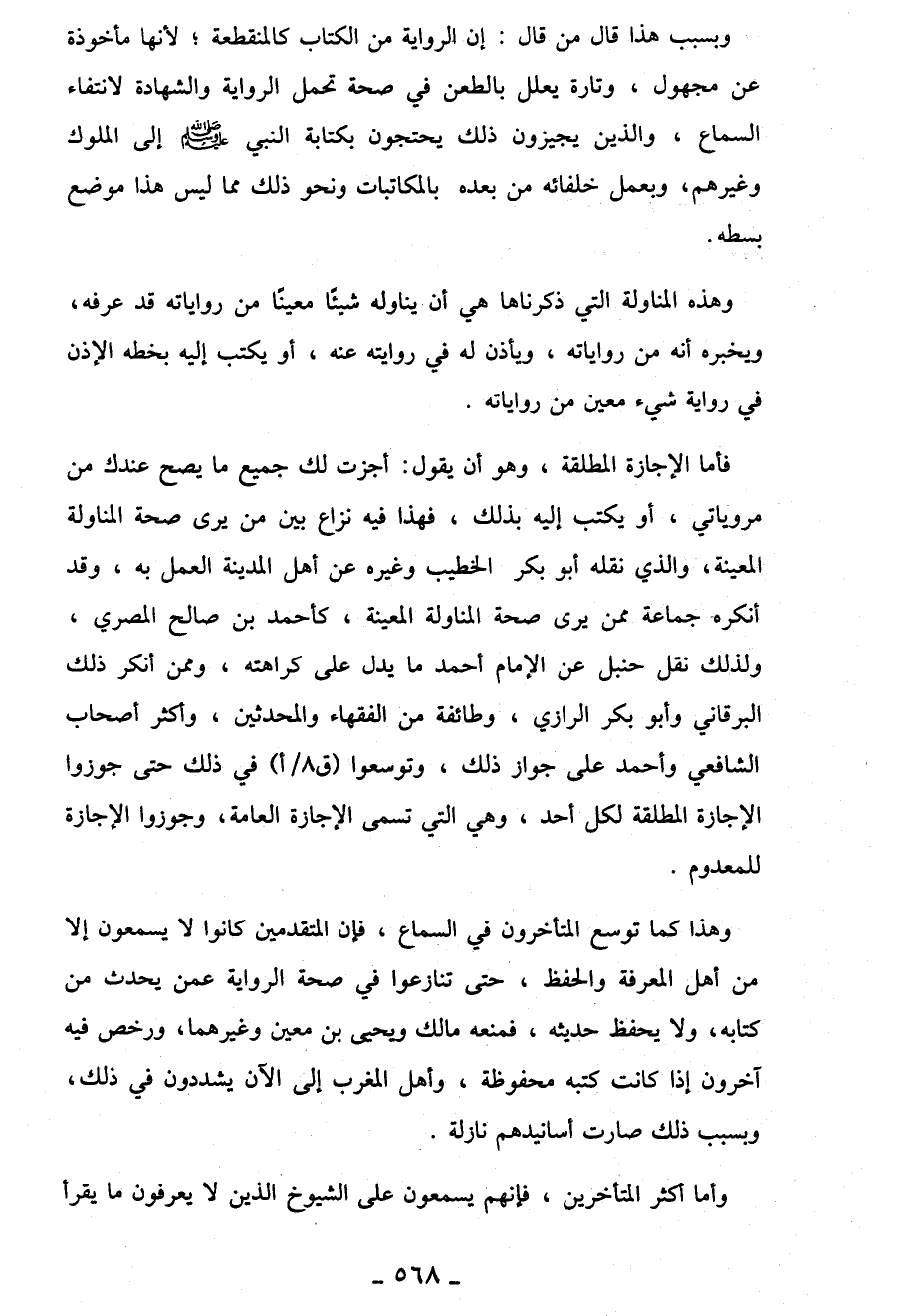 وبسبب هذا قال من قال: إِن الرواية من الكتاب كالمنقطعة؛ لأنها مأخوذة عن مجهول، وتارة يعلل بالطعن في صحة تحمل الرواية والشهادة لانتفاء السماع، والذين يجيزون ذلك يحتجون بكتابة النبي صلى الله عليه وسلم إِلَى الملوك وغيرهم، وبعمل خلفائه من بعده بالمكاتبات ونحو ذلك مما ليس هذا موضع بسطه.