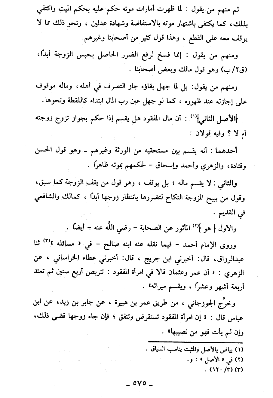 {الأصل الثاني} (¬1): أن مال المفقود هل يقسم إذا حكم بجواز تزوج زوجته أم لا؟ وفيه قولان: