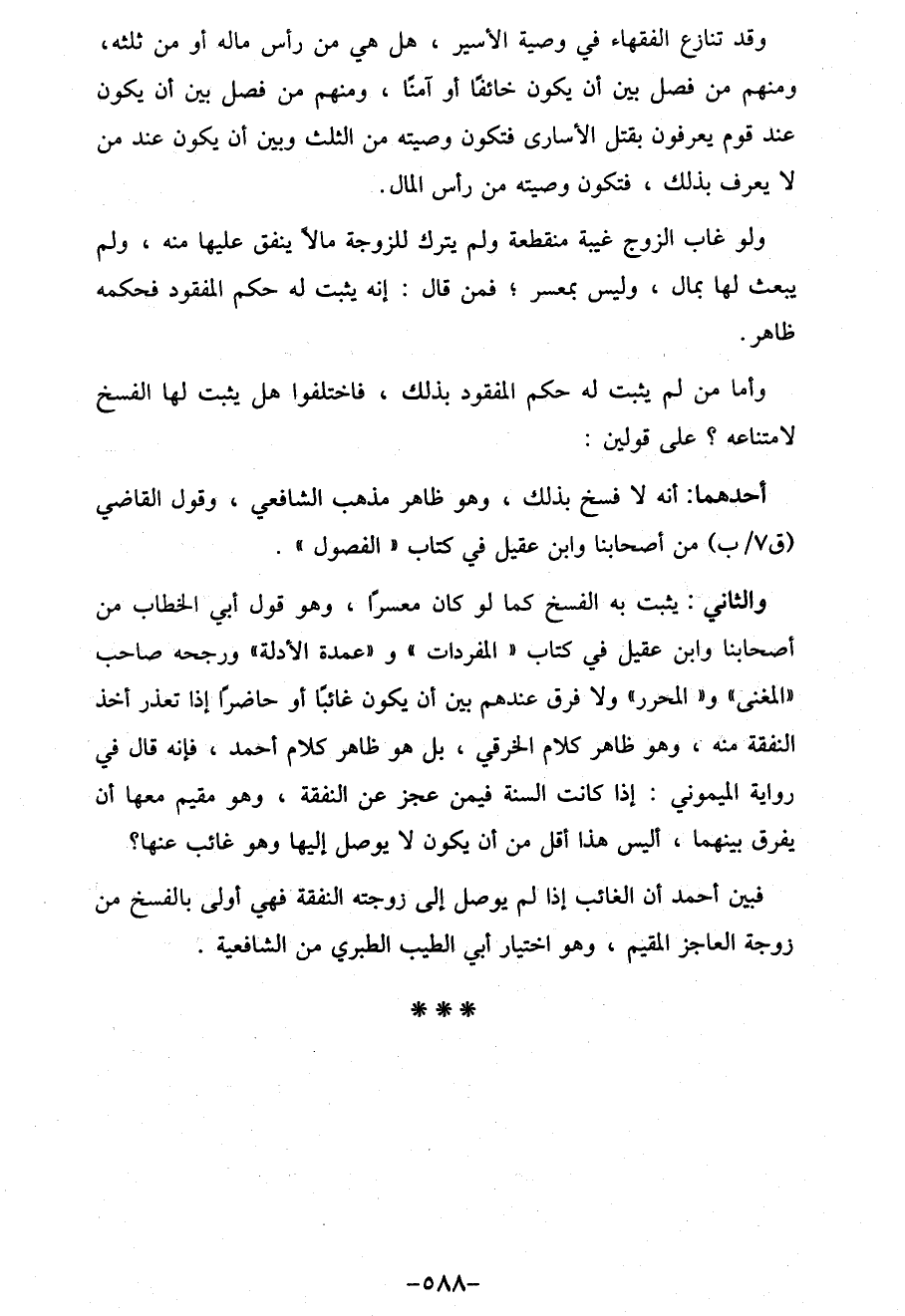 فبين أحمد أن الغائب إذا لم يوصل إِلَى زوجته النفقة فهي أولى بالفسخ من زوجة العاجز المقيم، وهو اختيار أبي الطيب الطبري من الشافعية.