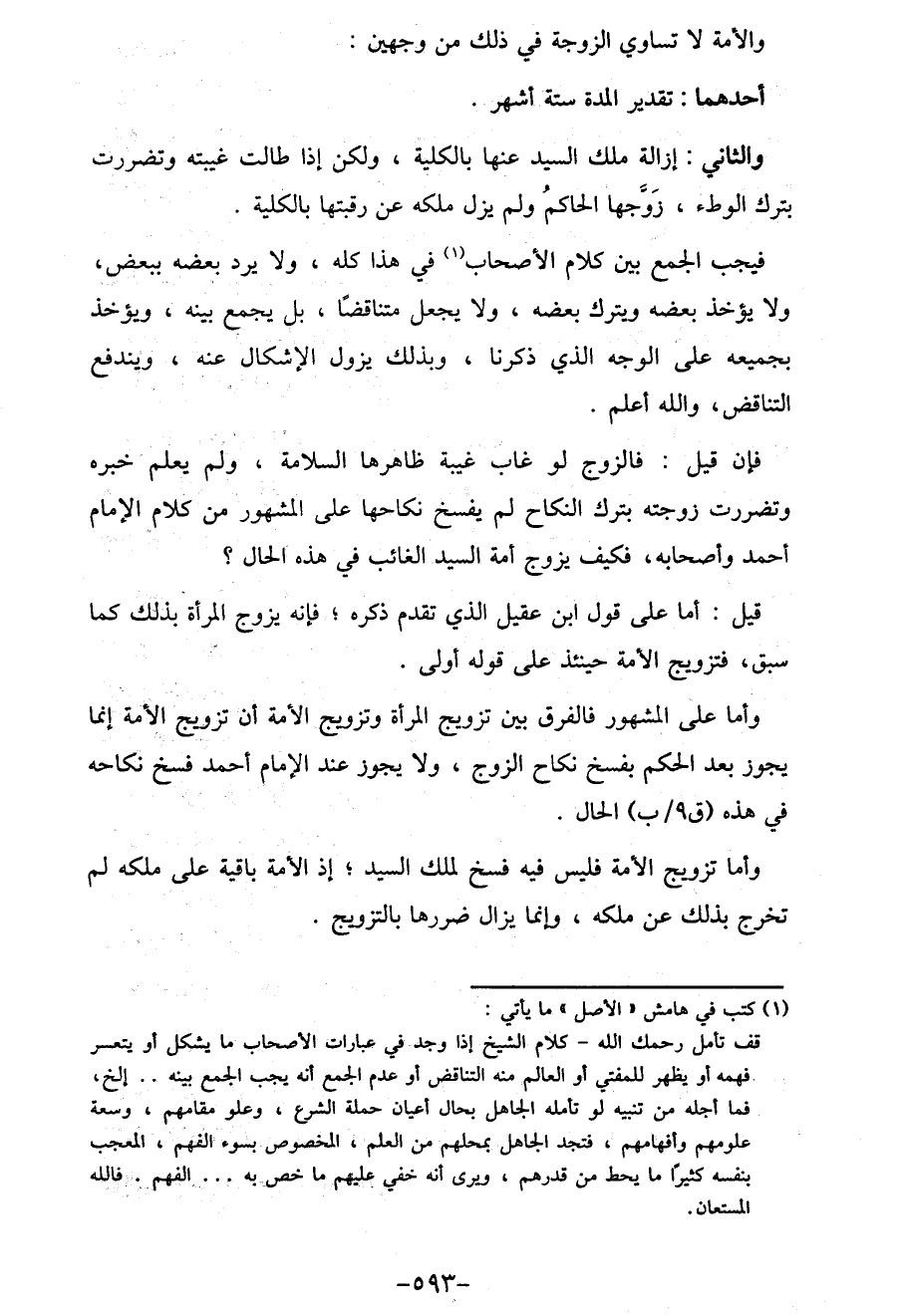 والأمة لا تساوي الزوجة في ذلك من وجهين: