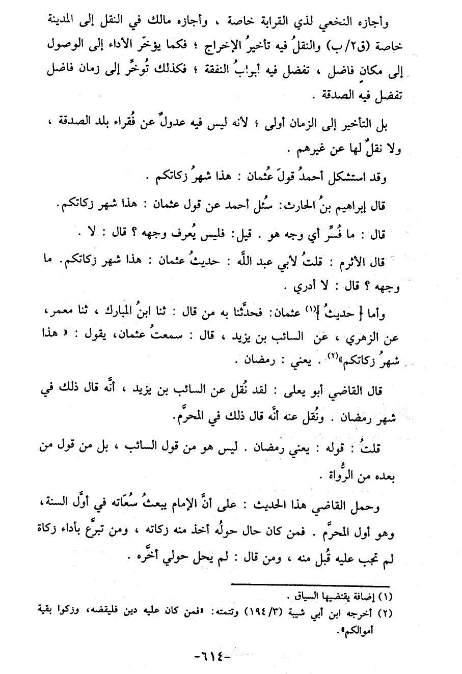 قال إبراهيم بنُ الحارث: سُئل أحمد عن قول عثمان: هذا شهر زكاتكم.