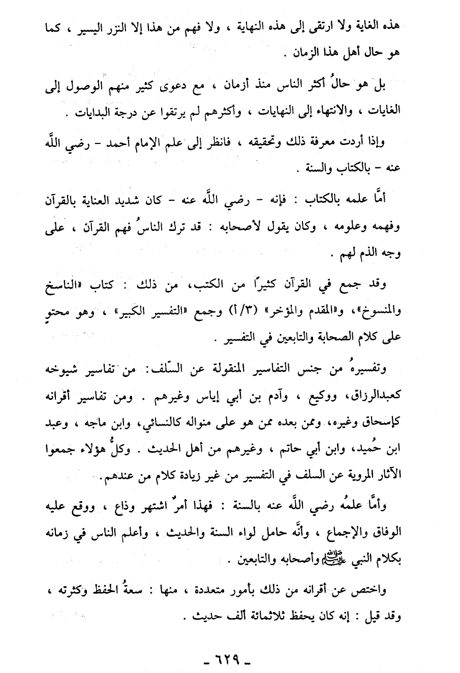 وإذا أردت معرفة ذلك وتحقيقه، فانظر إِلَى علم الإمام أحمد -رضي الله عنه- بالكتاب والسنة.
