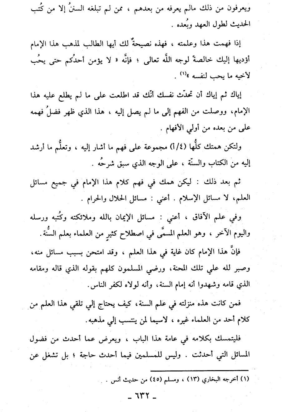 ثم بعد ذلك: ليكن همك في فهم كلام هذا الإمام في جميع مسائل العِلْم، لا مسائل الإسلام. أعني: مسائل الحلال والحرام.