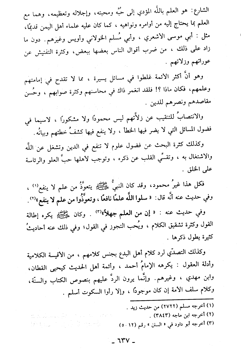 فكل هذا غيرُ محمود، وقد كان النبيُّ صلى الله عليه وسلم يتعوَّذُ من علم لا ينفع (¬1)، وفي حديث عنه أنَّه قال: «سَلُوا اللَّهَ عِلْمًا نَافِعًا، وَتَعَوَّذُوا بِاللَّهِ مِنْ عِلْمٍ لَا يَنْفَعُ» (¬2).