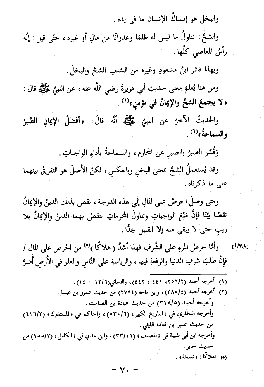 ومن هنا يُعلمُ معنى حديث أبي هريرةَ رضي الله عنه، عن النبيّ - صلى الله عليه وسلم - قال: "لا يجتمعُ الشحُّ والإيمانُ في مؤمنٍ" (¬1).