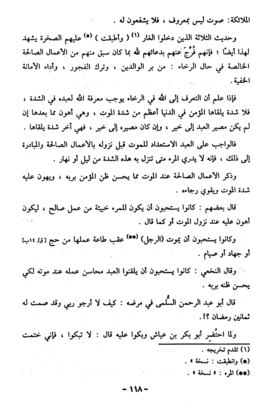 وكانوا يستحبون أن يموت (الرجل) (**) عقب طاعة عملها من حج أو جهاد أو صيام.