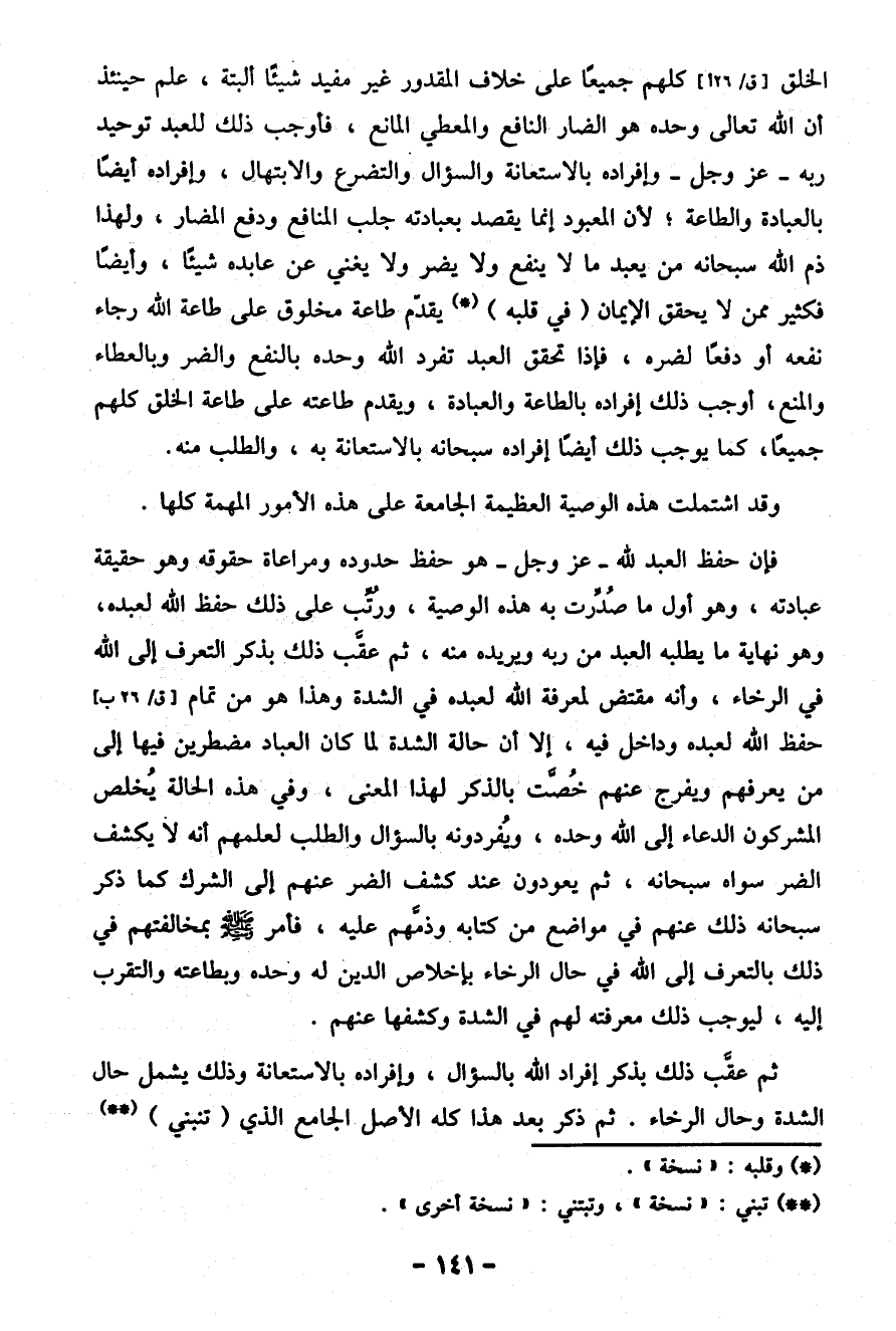 وقد اشتملت هذه الوصية العظيمة الجامعة عَلَى هذه الأمور المهمة كلها.
