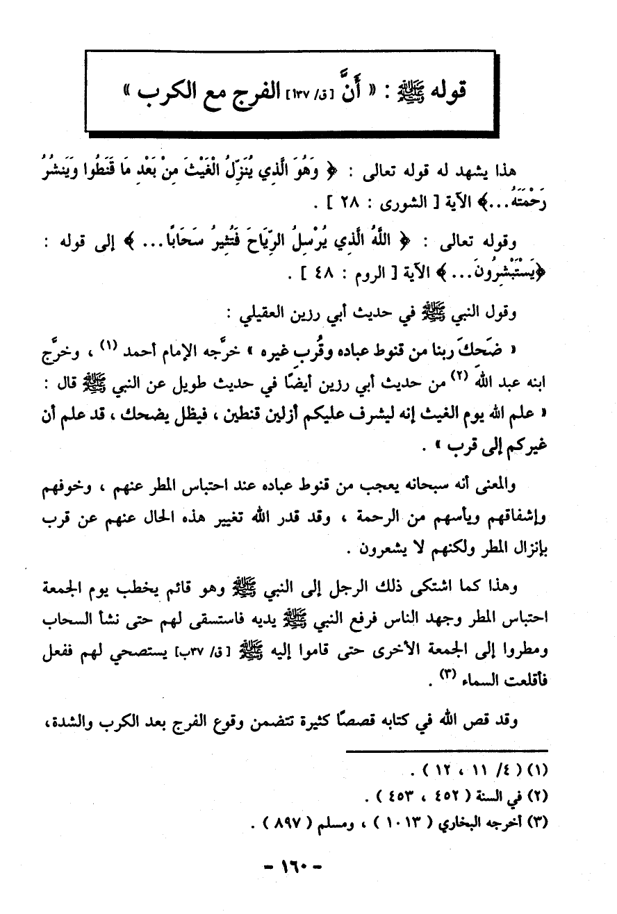 قوله - صلى الله عليه وسلم -: "أَنَّ الفرج مع الكرب"