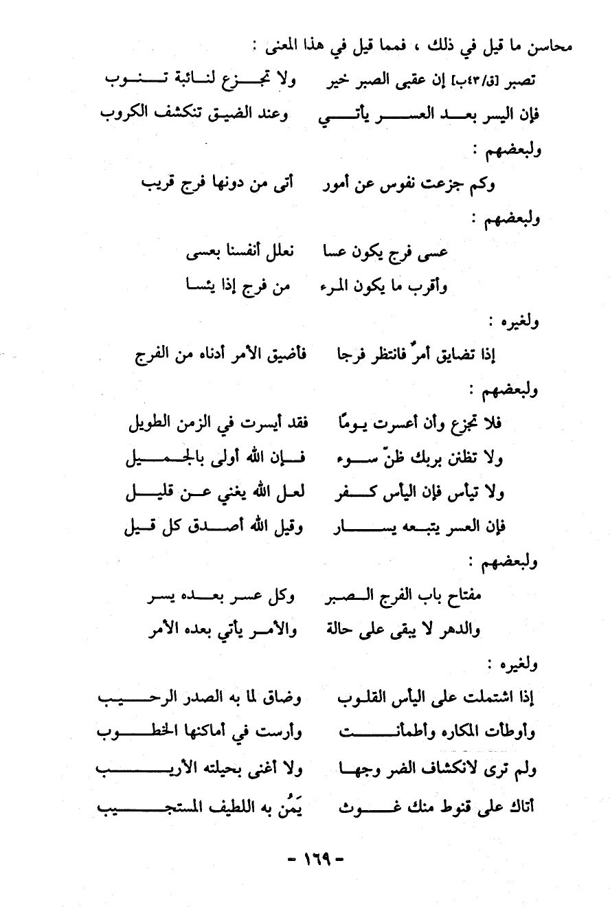 ولا تيأس فإن اليأس كفر ... لعل الله يغني عن قليل