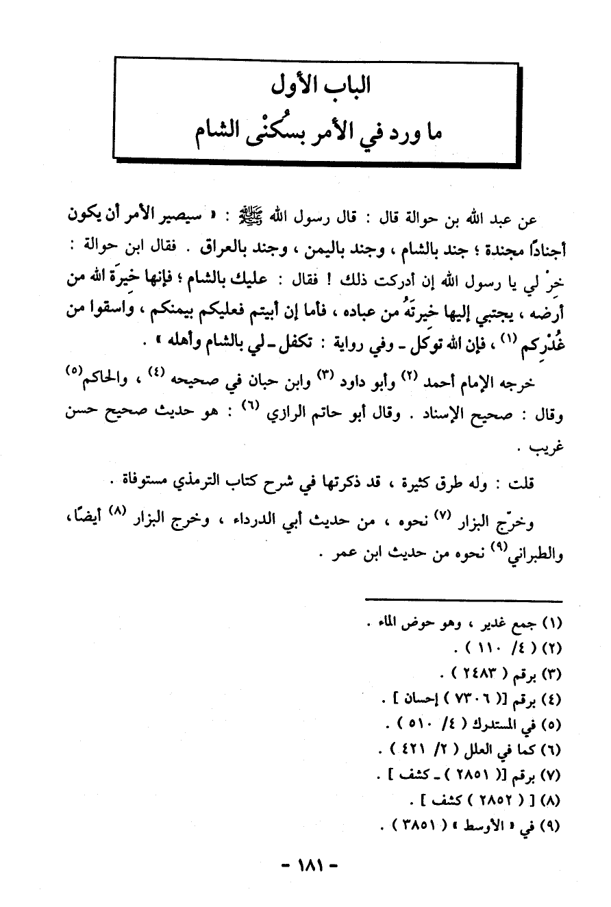 الباب الأول ما ورد في الأمر بسُكْنى الشام