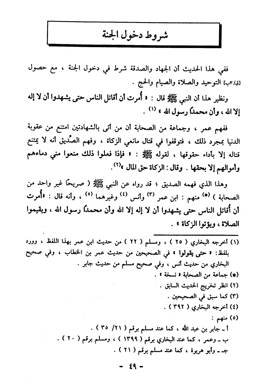 وهذا الَّذِي فهمه الصديق؛ قد رواه عن النبي - صلى الله عليه وسلم - (صريحًا غير واحد من الصحابة) (*) منهم: ابن عمر (¬3) وأنس (¬4) وغيرهما (¬5)، وأنه قال: «أُمِرْتُ أَنْ أُقَاتِلَ النَّاسَ حَتَّى يَشْهَدُوا أَنْ لَا إِلَهَ إِلَّا اللَّهُ وَأَنَّ مُحَمَّدًا رَسُولُ اللَّهِ، وَيُقِيمُوا الصَّلَاةَ وَيُؤْتُوا الزَّكَاةَ» ".