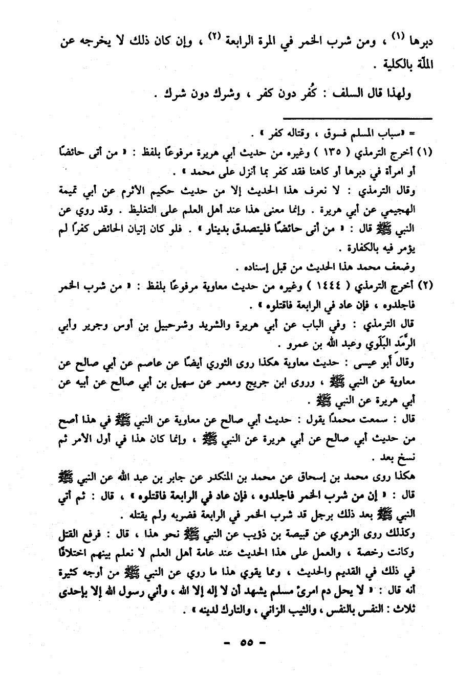 (¬1) أخرج الترمذي (135) وغيره من حديث أبي هريرة مرفوعًا بلفظ: "من أتى حائضًا أو امرأة في دبرها أو كاهنا فقد كفر بما أنزل عَلَى محمد".