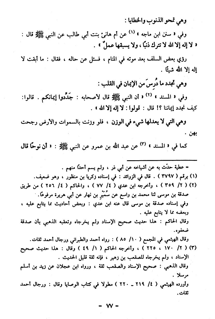 رؤي بعض السَّلف بعد موته في المنام، فسئل عن حاله، فَقَالَ: ما أبقت لا إله إلا الله شيئًا.