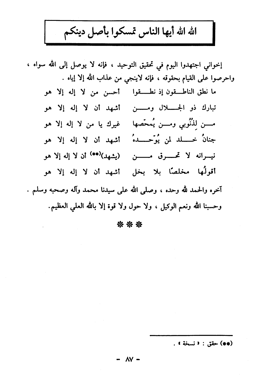 الله الله أيها الناس تمسكوا بأصل دينكم
