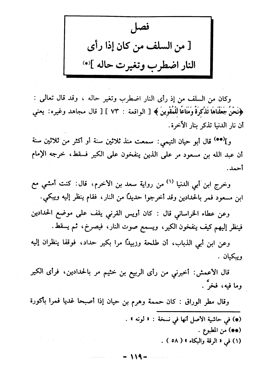 فصل [من السَّلف من كان إذا رأى النار اضطرب وتغيرت حاله] (*)