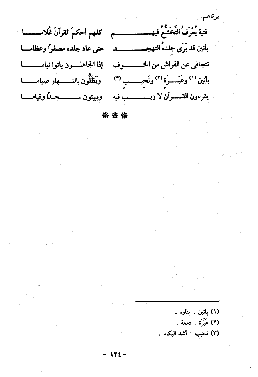 فتية يُعْرَفُ التَّخَشُّعُ فيهم ... كلهم أحكمَ القرآن غُلامًا