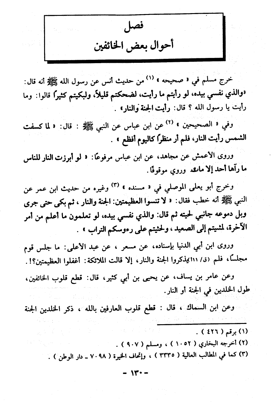خرج مسلم في "صحيحه" (¬1) من حديث أنس عن رسول الله صلّى الله عليه وسلم أنّه قَالَ: "والذي نفسي بيده، لو رأيتم ما رأيت، لضحكتم قليلاً، ولبكيتم كثيرًا قالوا: وما رأيت يا رسول الله؟ قَالَ: رأيت الجنة والنار".