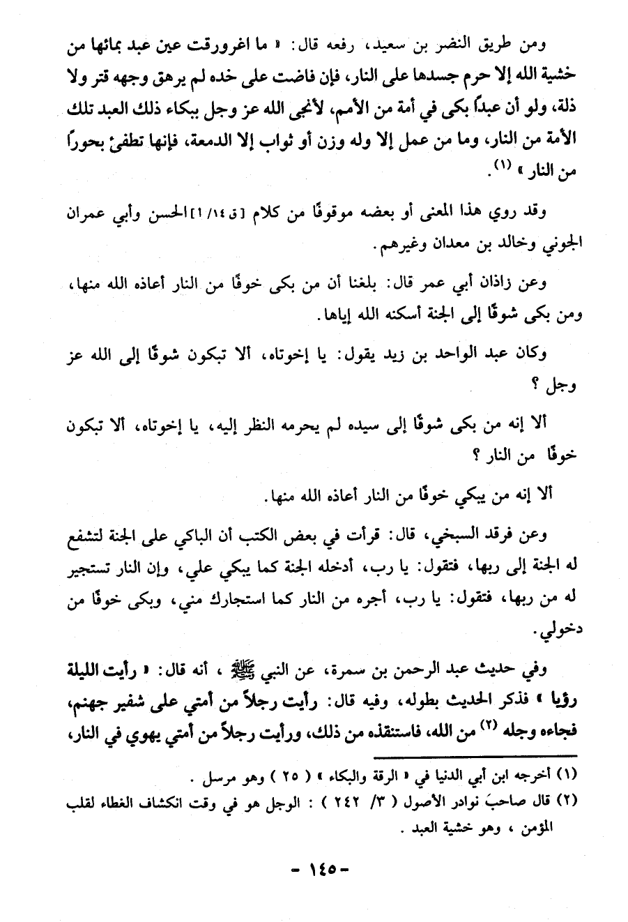 ألا إنه من بكى شوقًا إِلَى سيّده لم يحرمه النظر إِلَيْهِ، يا إخوتاه، ألا تبكون خوفًا من النار؟