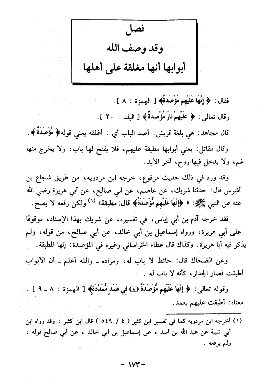 فصل وقد وصف الله أبوابها أنها مغلقة عَلَى أهلها