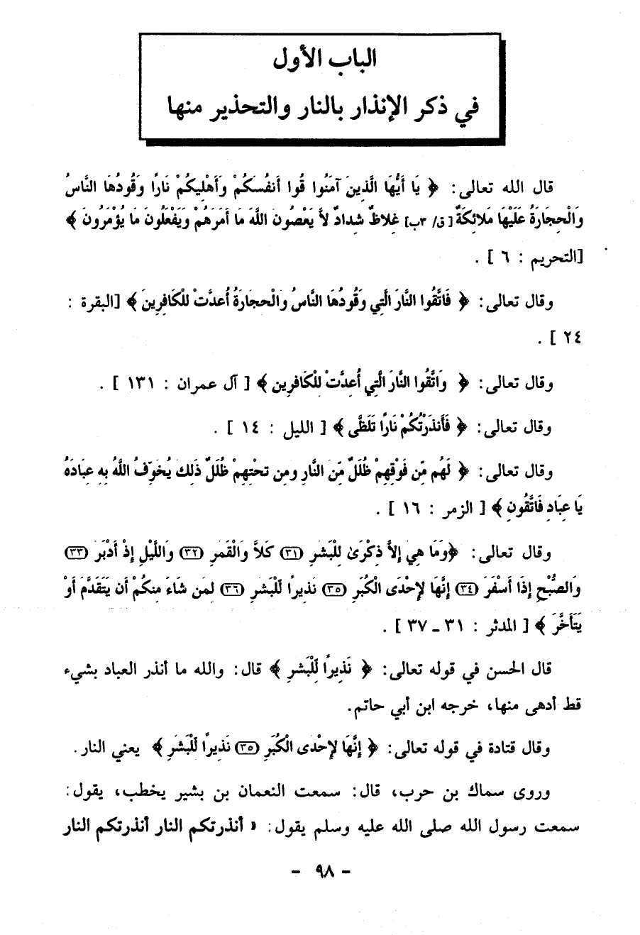 الباب الأول في ذكر الإنذار بالنار والتحذير منها