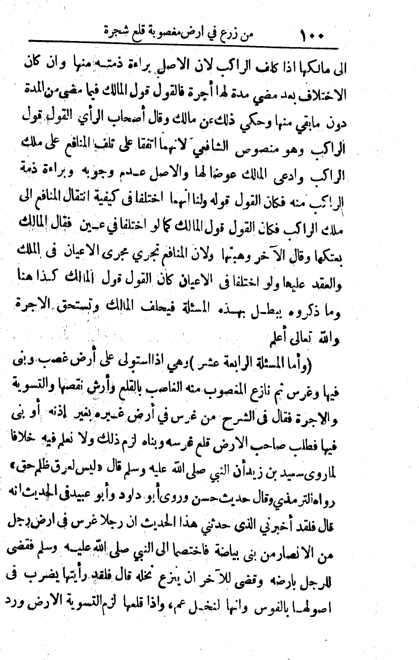 وروى أبو داود وأبو عبيد في الحديث أنه قال: فلقد أخبرني الذي حدثني هذا الحديث "أن رجلا غرس في أرض رجل من الأنصار من بني بياضة، فاختصما إلى النبي صلى الله عليه وسلم فقضى للرجل بأرضه، وقضى للآخر أن ينزع نخله"، قال: فلقد رأيتها يُضْرَبُ في أصولها بالفؤوس، وإنها لنخل عم، وإذا قلعها لزم التسوية الأرض ورد