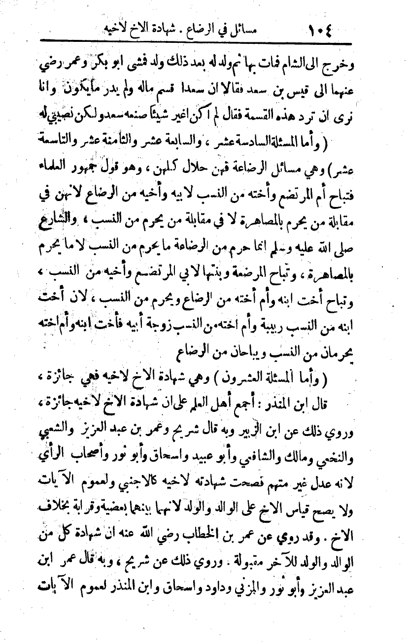 (وأما المسألة السادسة عشر، والسابعة عشر، والثامنة عشر، والتاسعة عشر) : وهي مسائل الرضاعة، فهن حلال كلهن، وهو قول جمهور العلماء، فتباح أم المرتضع، وأخته من النسب لأبيه وأخيه من الرضاع، لأنهن في مقابلة من يحرم بالمصاهرة لا في مقابلة من يحرم من النسب.