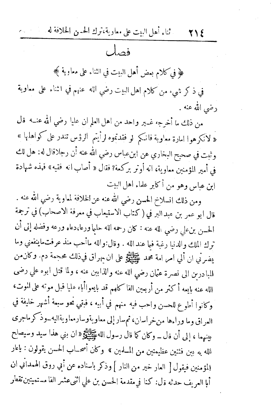 فصل في كلام بعض أهل البيت في الثناء على معاوية