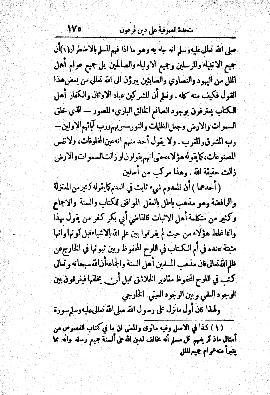 (1) كذا في الأصل وفيه ما ترى والمعنى أن ما في كتاب الفصوص من أمثال ما ذكر يفهم كل مسلم أنه مخالف لدين الله على ألسنة جميع رسله وأنه مما يتبرأ منه عوام جميع الملل