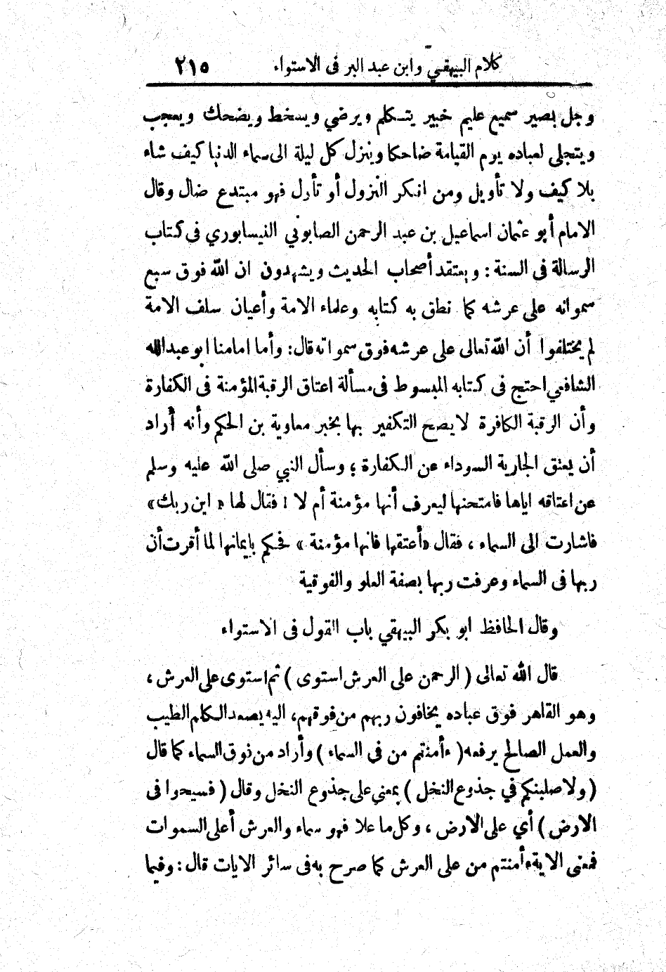 وقال الحافظ أبو بكر البيهقي باب القول في الاستواء.