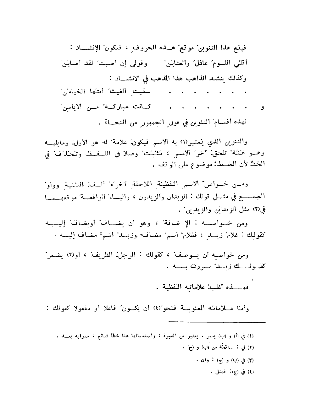 فيقع هذا التنوين موقع هذه الحروف، فيكون الإنشاد: