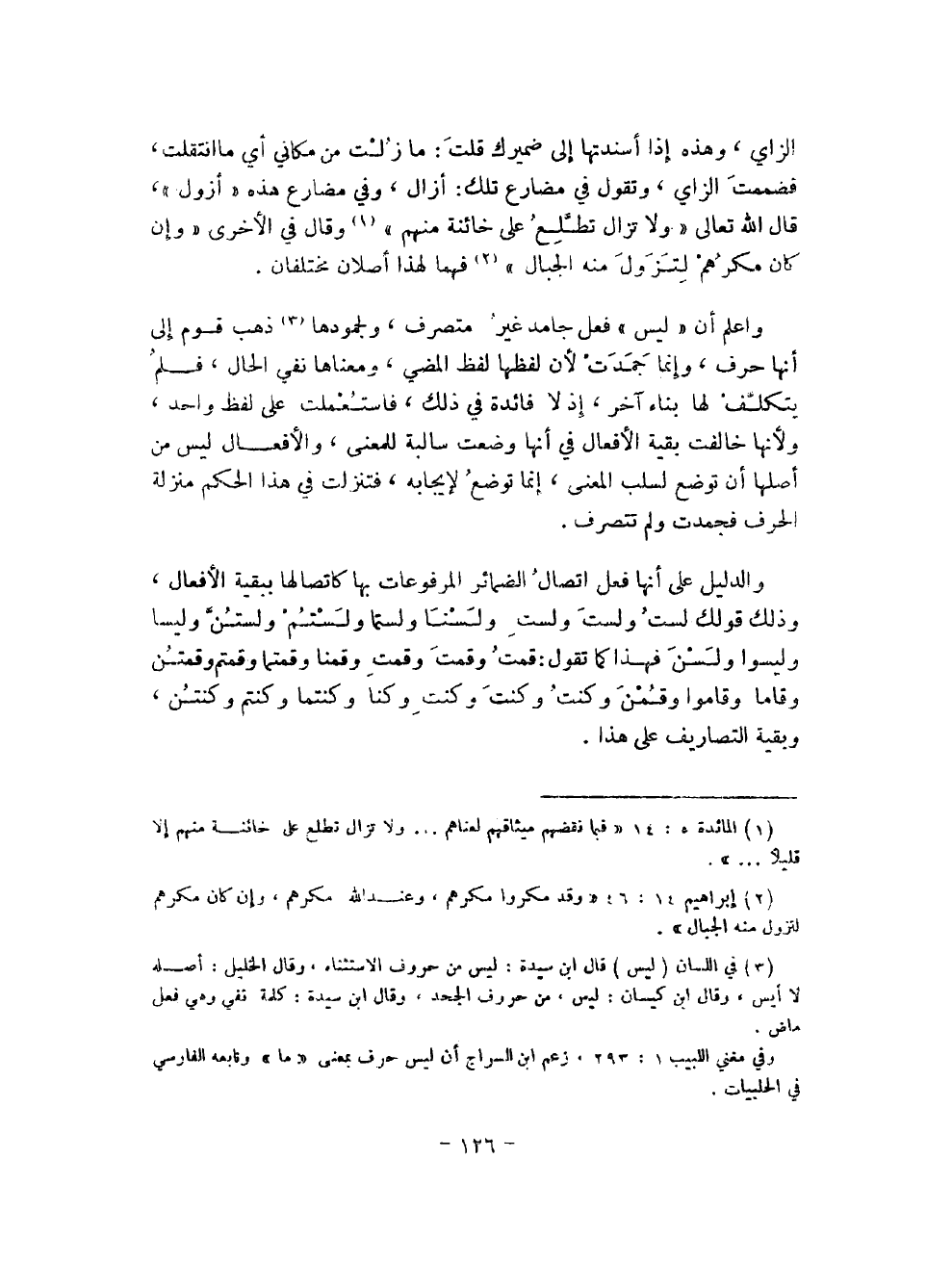 (¬3) في اللسان (ليس) قال ابن سيدة: ليس من حروف الاستثناء، وقال الخليل: أصله لا أيس، وقال ابن كيان: ليس، من حروف الجحد، وقال ابن سيدة: كلمة نفي وهي فعل ماض.