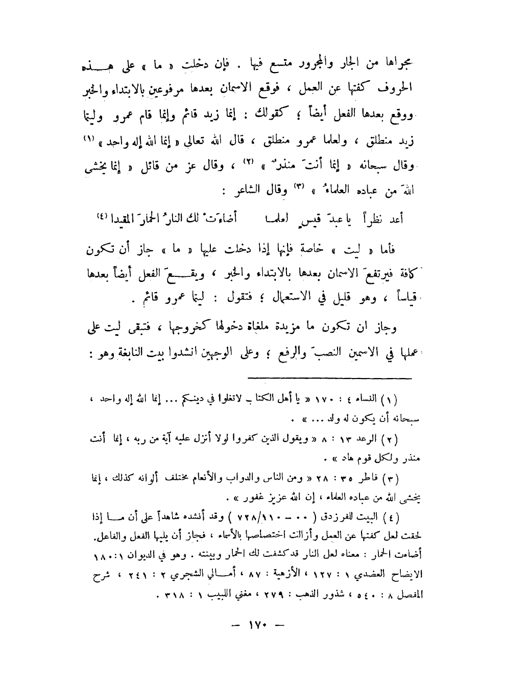 وكشف هذا التعليل وهذه العبرة بوضع "ذاك" موضعها أنها مع اسمها وخبرها في تقدير مصدر، والمصدرُ اسم مفرد، ولهذا وقعت فاعلةً ومفعولةً ومجرورة كقولك (¬3): بلغني أنك منطلق، أي بلغني انطلاقك وعرفت أنك منطلق، أي عرفت انطلاقك وعجبت من أنك منطلق؛ أي عجبت من انطلاقك.