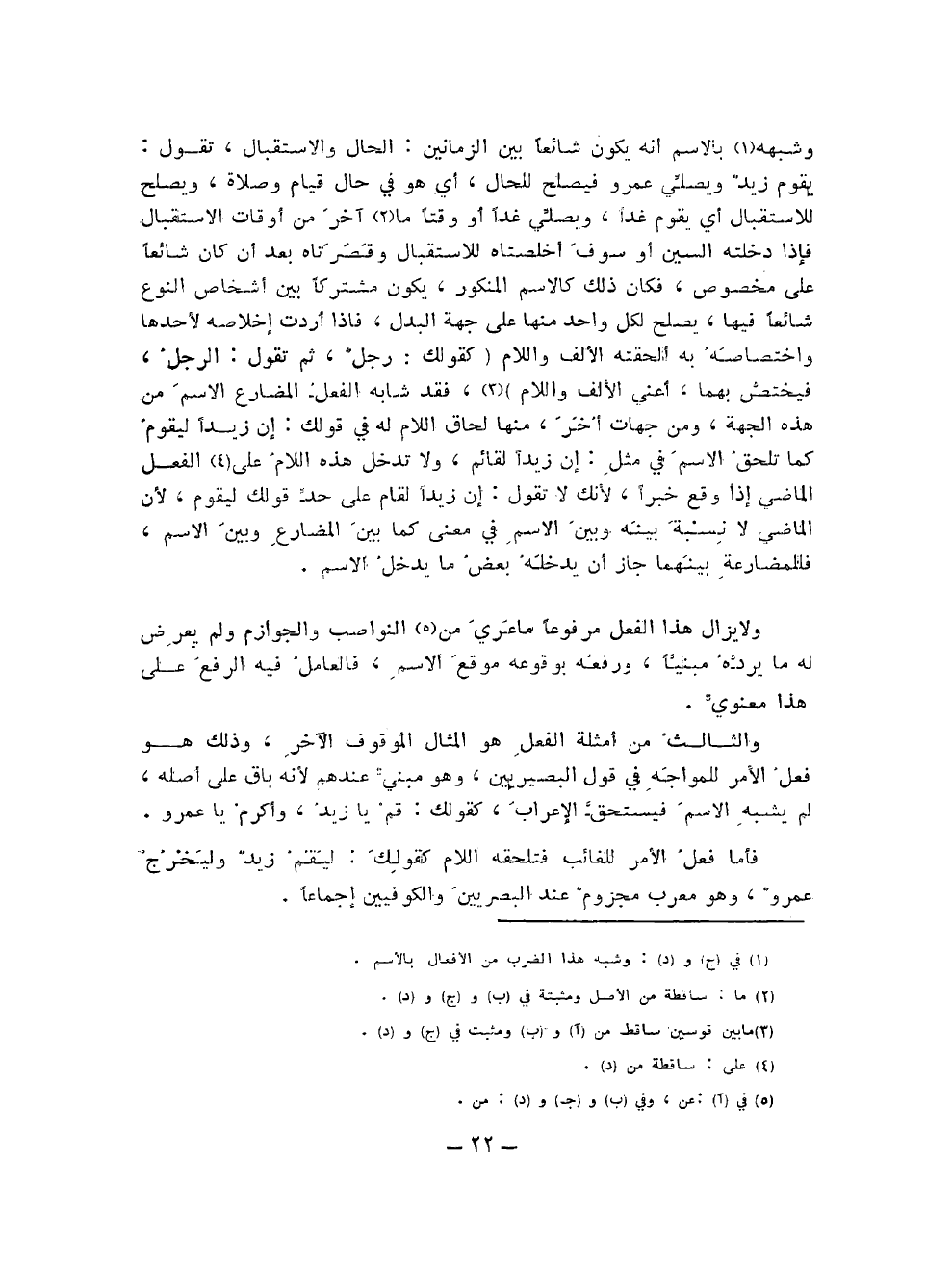 (¬1) في (ج) و (د): وشبه هذا الضرب من الأفعال بالاسم.