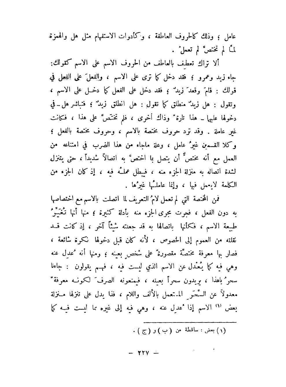 وقد كف بـ"ما" هذه الفعل وحرف الجر، وهما عاملان قويان دخلت عليهما "ما" فأبطلت عملهما وهيأتهما لوقوع شيء بعدهما، لولاها (¬1) لم يكن ليقع، فخرجا بها عن أصل وضعهما في كونهما عاملين وصلحا بها لما لم يصلحا له قبلها.