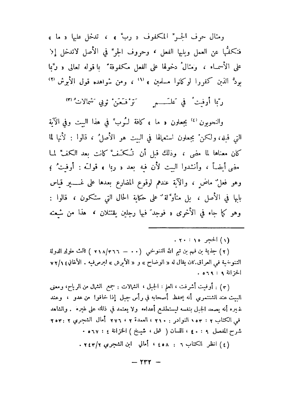 وهو المجرى مُجرى الفعل إجراءً حقيقياً، فيعمل عملته الصريح، وهو رفع الفاعل ونصب المفعول إن كان هناك مفعول، ومنها ما هو مشبه لذاك القسم في العمل، فينصب نصباً غير صريح بل على التشبيه بالمفعول، وسيذكر بعد هذا.