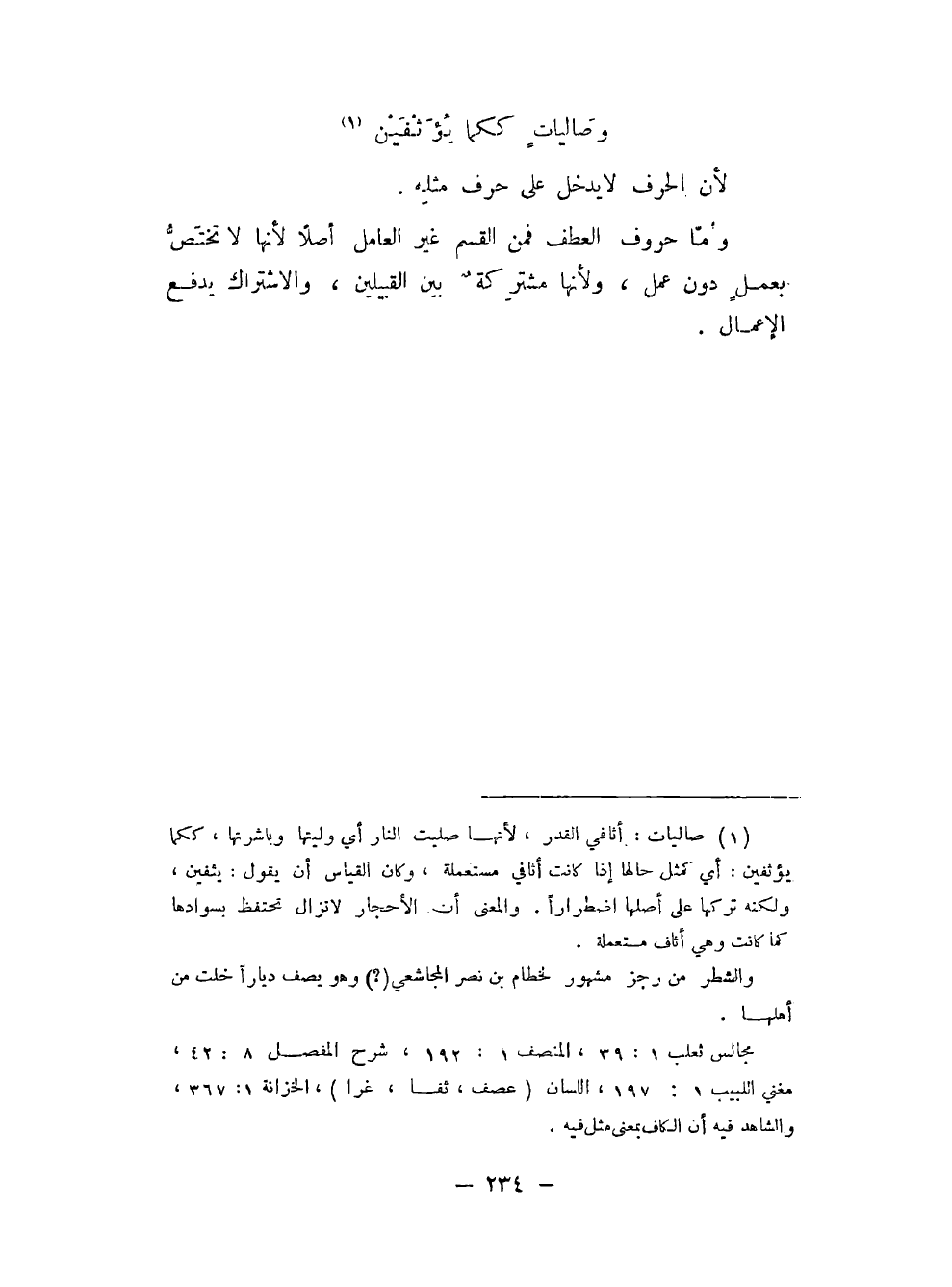وعلى ذلك أيضاً جاء "ثاني عطفه" (¬1)، فنصبه على الحال؛ والحال من شرطها أن تكون نكرة، فلولا أن إضافته في نية الانفصال والتنوين مرادٌ كالمنطوق به لما جاز نصه على الحال. ولو أردت مثل هذا في الماضي لم يجز عندهم.