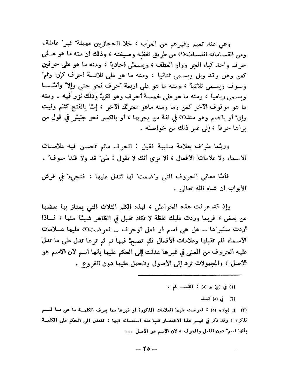 (¬3) في (ج) و (د): فعرضت عليها العلامات المذكورة أو غيرها مما يعرف الكلمة ما هي مما لم نذكره، وقد ذكر في غير هذا الاختصار فنبا عنه استعماله فيها، فاعدل إلى الحكم على الكلمة بأنها اسم دون الفعل والحرف، لأن الاسم هو الأصل ...