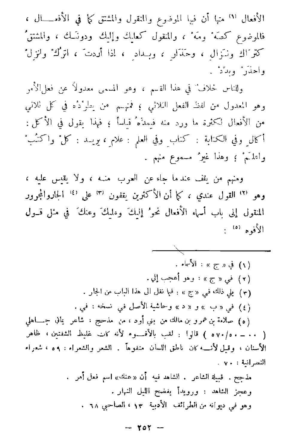 فنصب "طي المحمل" بما دل عليه ما تقدمه من البيت؛ كأنه قال: طوي طي المحمل. واحتج من أجاز التقديم في معمول هذه الكلم بقول الآخر أيضاً:
