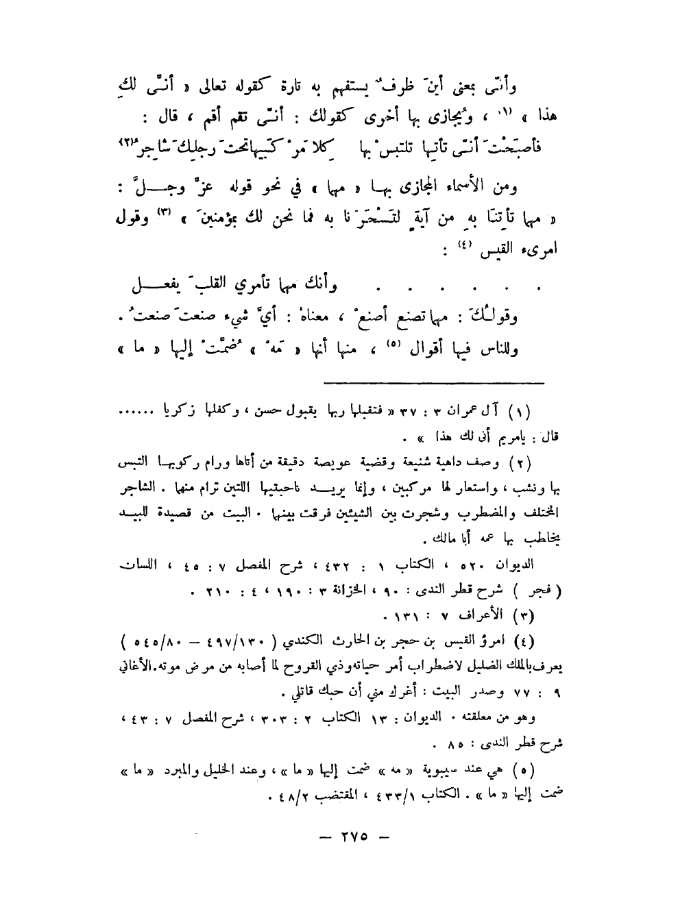 ويتبين لك قبح التكرار وخوف اللبس في إعادة الظاهر في احتياجك إلى ذكر الظاهر أكثر من مرة إذا قلت: زيدٌ مررت به، فأكرمته ورأيت أباه فأحسنت إليه؛ وعلى هذا النهج من الإطالة إذا احتيج إليها، فوقع التكرار.
