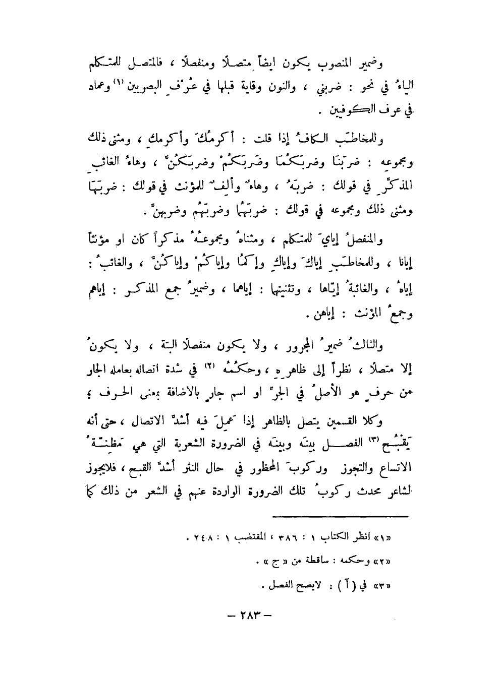 ومثال الموصول قولك: مررت بالذي قام أبوه، فالذي اسم موصول، وما بعده مما يتم به معناه صلته، وكذلك مؤنثه وتثنيتهما وجمعهما وما جرى مجراهما مما هو في معناهما كمن وما وأي إذا استعملت موصولة.