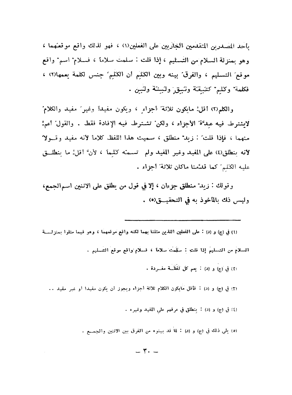 وقولك: زيد منطلق جزءان، إلا في قول من يطلق على الاثنين اسم الجمع، وليس ذلك بالمأخوذ به في التحقيق (¬5).