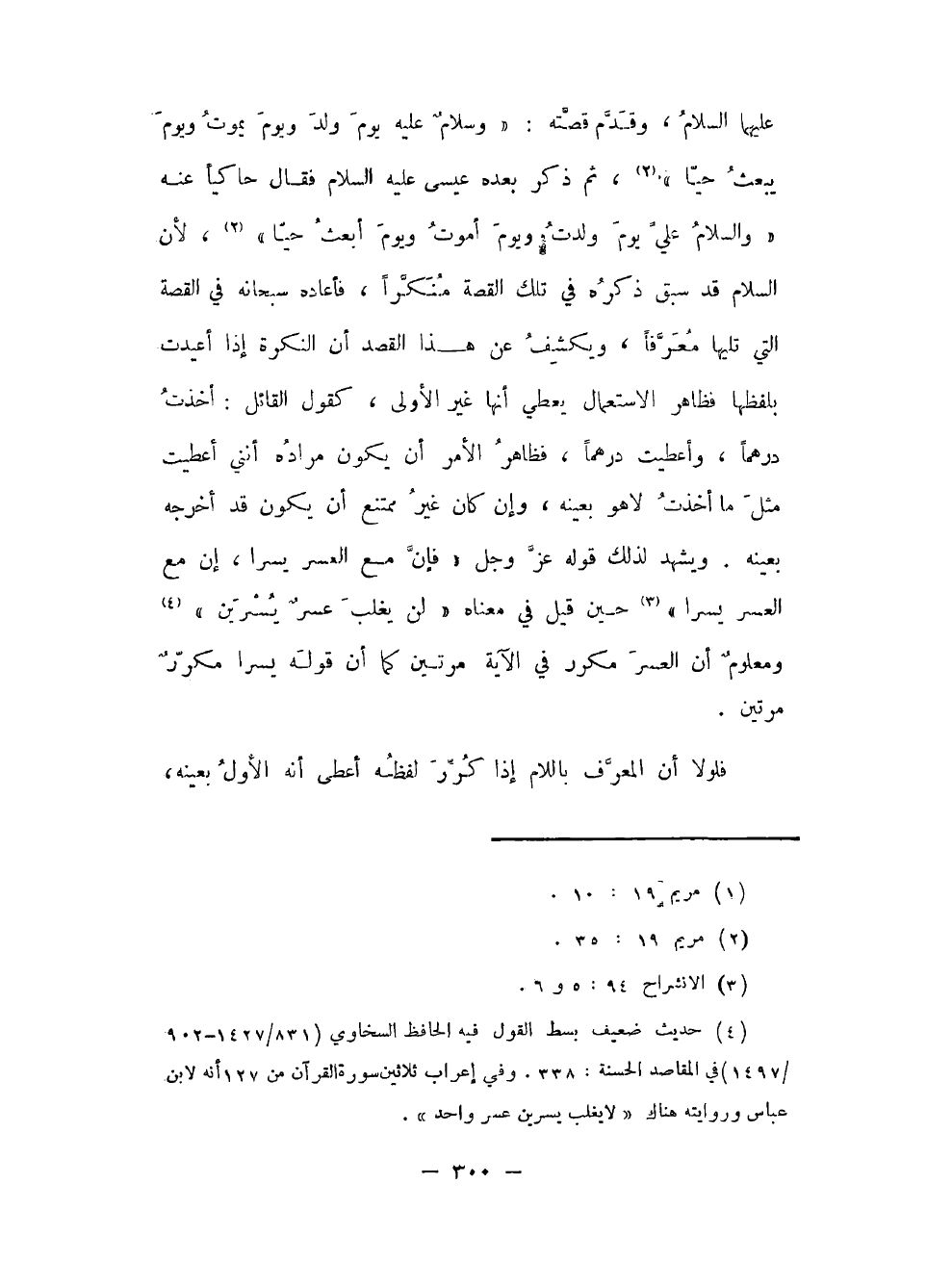 (¬2) في هذا الرأي هو رأي ابن السراج محمد بن السري «00 - 316/ 929» والسيرا في الحسن بن عبدالله «284/ 897 - 368 - 979»، ونحويي الكوفة. انظر الإنصاف: 707.